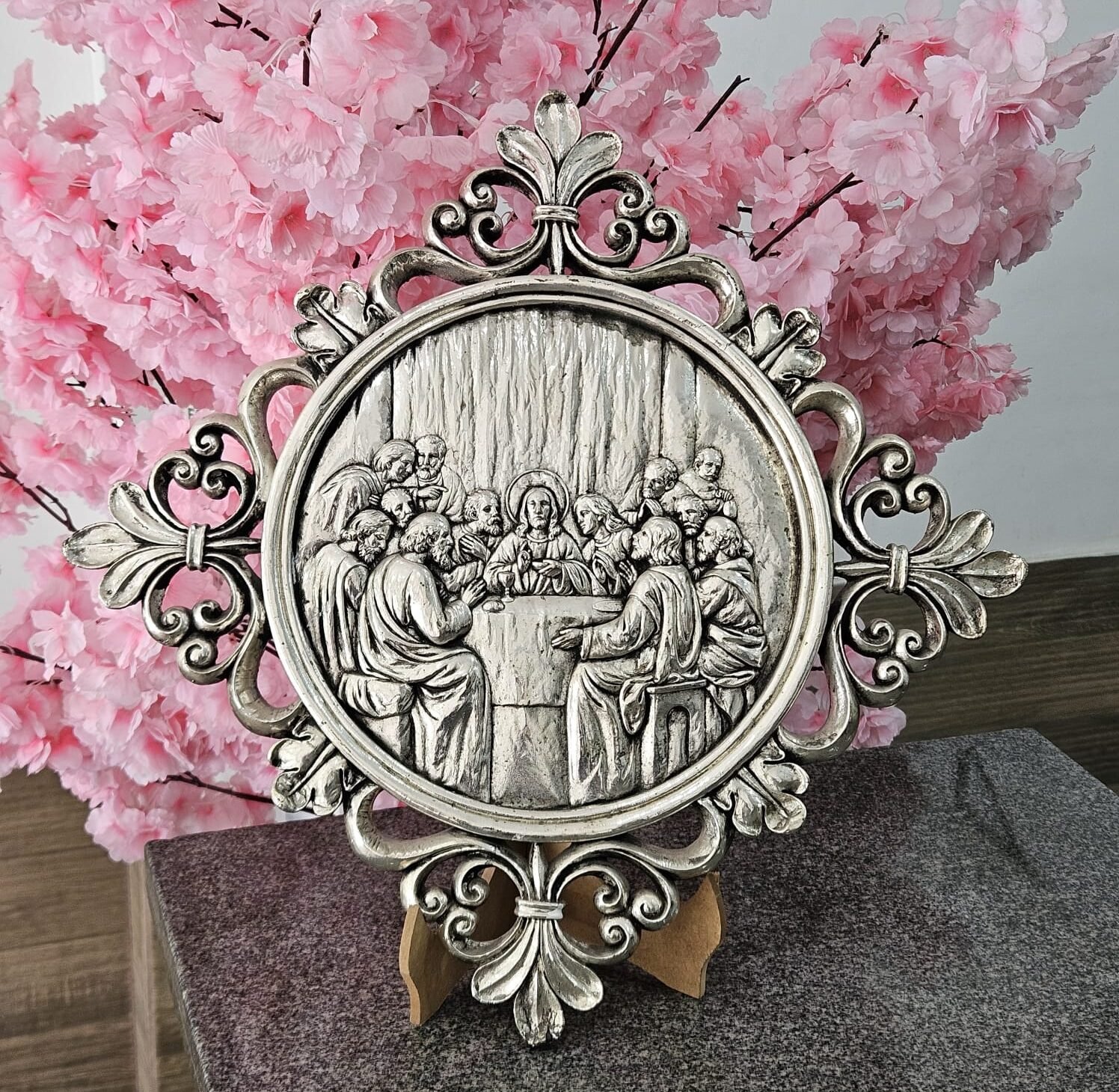 Uma belíssima peça decorativa que apresenta a cena clássica da Última Ceia, um dos momentos mais emblemáticos da história cristã, retratada com riqueza de detalhes em alto-relevo. A composição transmite solenidade, fé e profunda espiritualidade, tornando a peça não apenas decorativa, mas também carregada de significado.